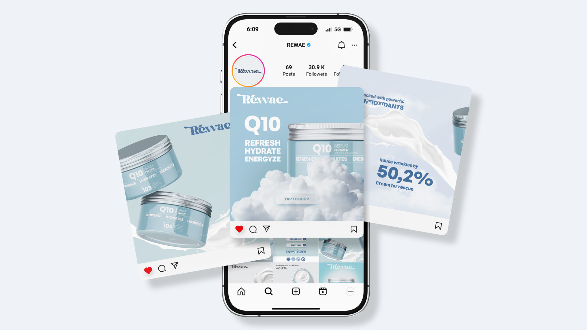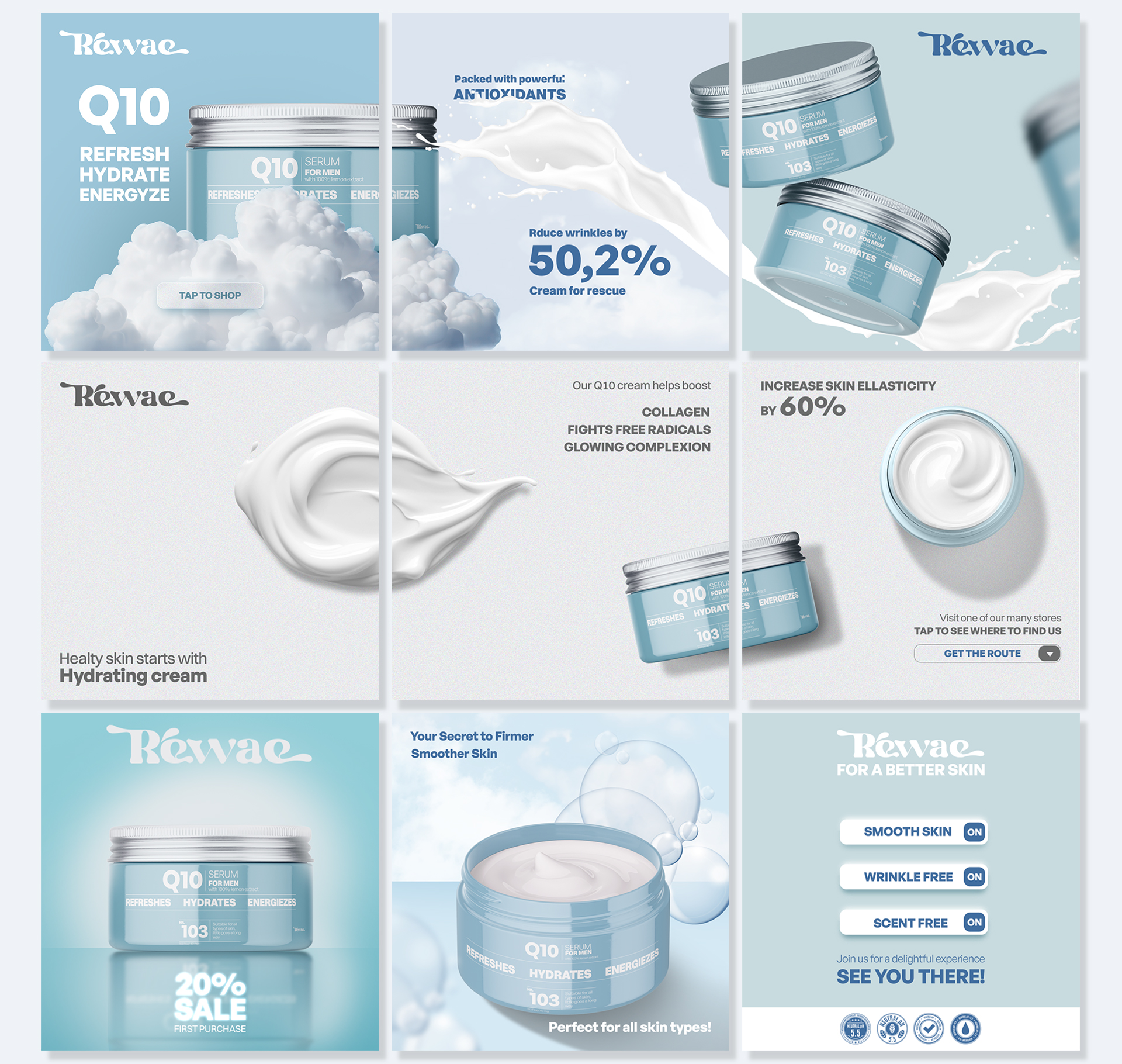 The approach to the Rewae fictional branding was centered on creating a distinctive and artistic logo that embodies the brand’s essence of modern luxury.