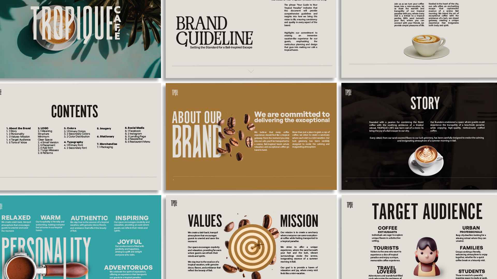 What is Tropique Cafe? It is a fictional brand that evokes the feeling of a tropical escape while having a cup of coffee.